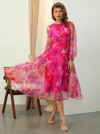 Casual Print Patchwork O Neck Long Sleeve Dress
