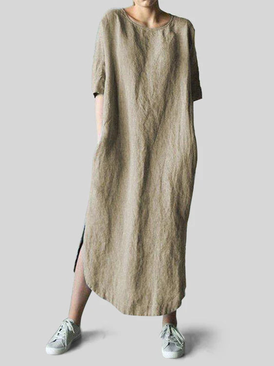 Solid Color Loose Cotton Linen Long Dress