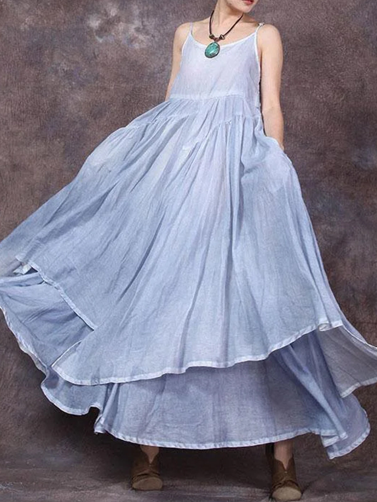 Casual Plain Sleeveless Big Swing Irregular Maxi Cami Dress