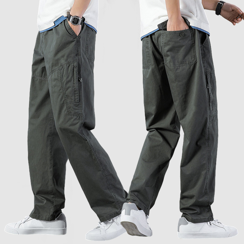 Spring and Summer Men's Casual Workwear Multi-Pocket Straight Leg Pants
