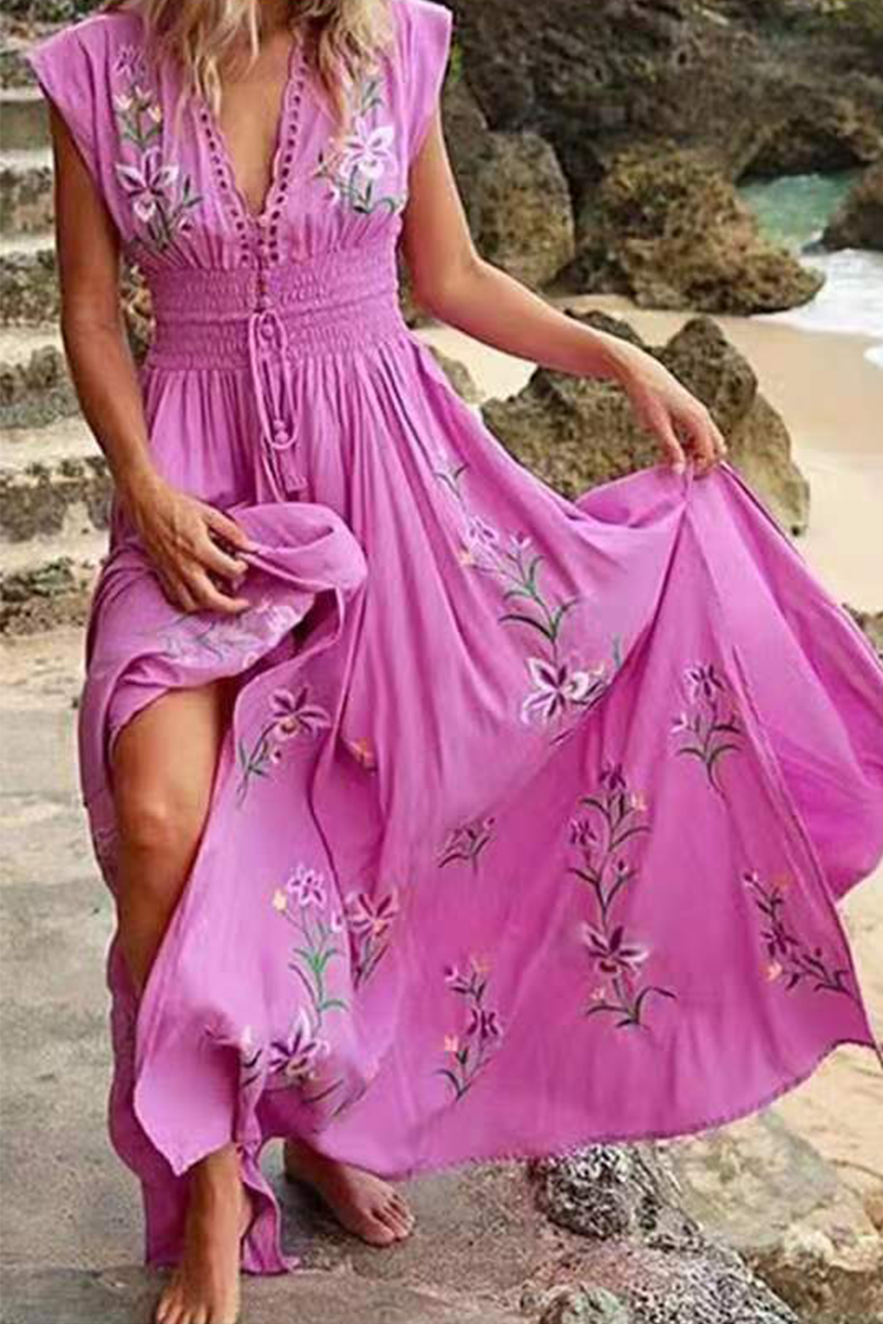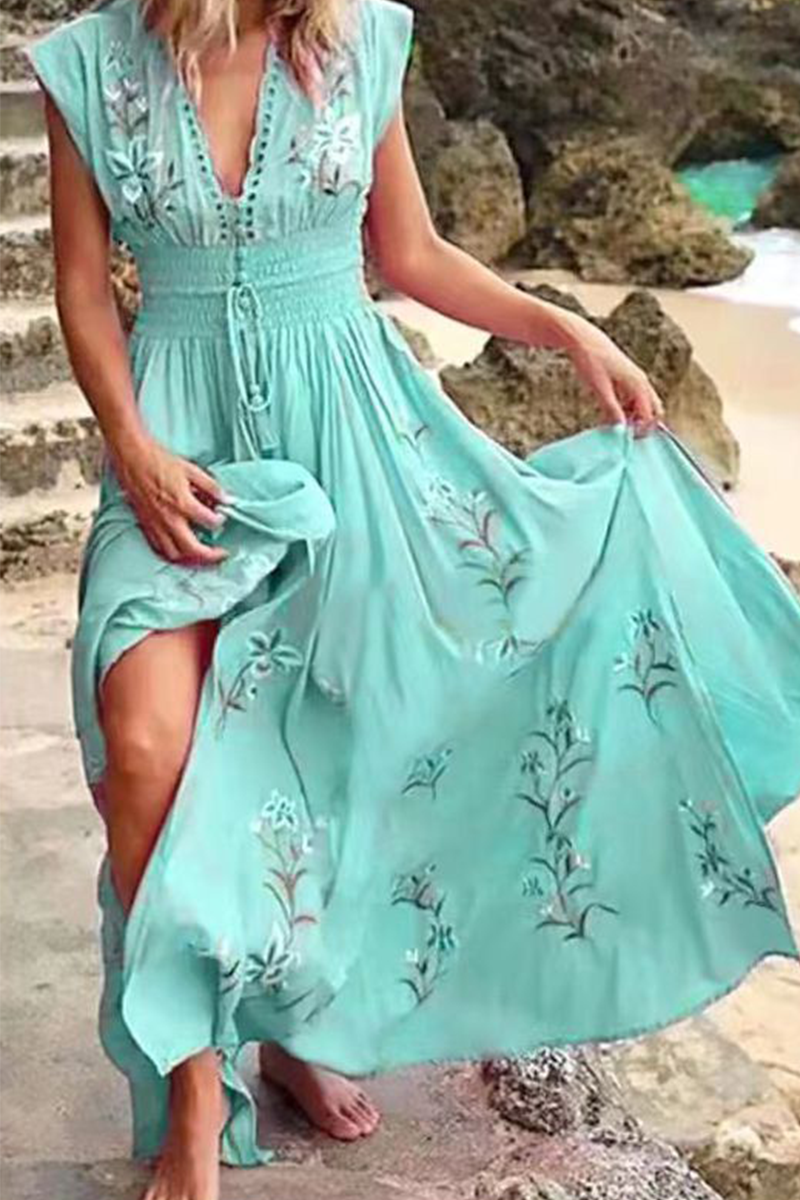 Fashion Solid V Neck Cake Dresses(4 Colors)