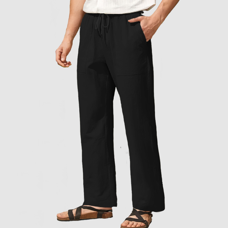 men’s casual linen pants feature a stretchy drawstring waist, straight legs, slant pockets, premium breathable cotton linen fabric, loose fit cut, and solid color, bringing you all-day comfort.