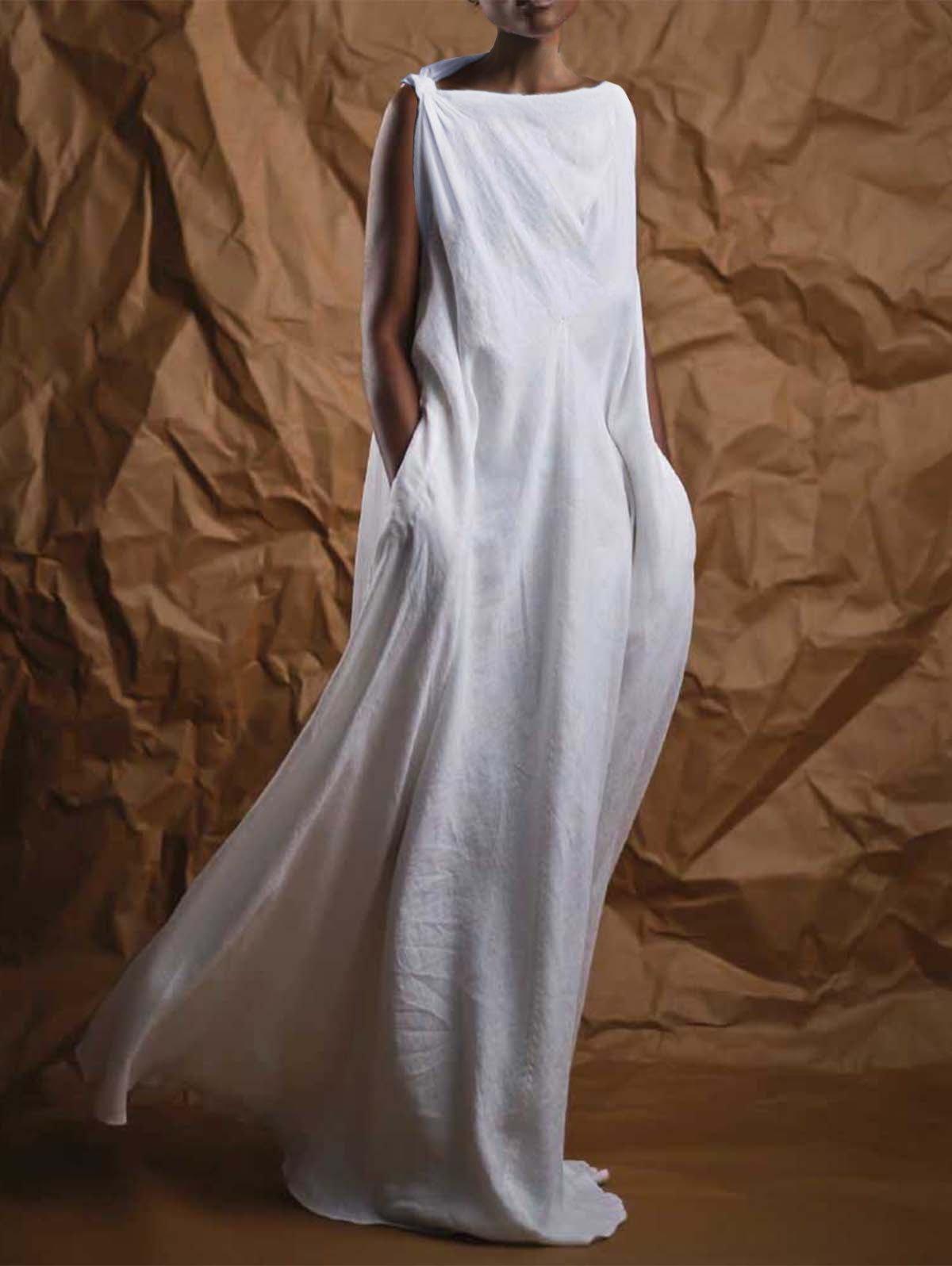 White Boat Neck Wrap Long Maxi Dress